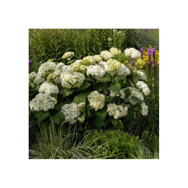 (Hydrangea arborescens FlowerWOW®) En helt ny kompakt och rikblommande hortensia. Blommar med jättestora klotformade vitgula blommor i juli-sep, på stadiga grenar. Grenarna är stabilt upprätta. Fin både i kruka och rabatten. Näringsrik, ej kalkhaltig jord. Hortensior ska beskäras på våren, före knoppsprickning. Höjd 100-120 cm. Lev. i 3,5-5 L kruka. SOL-HSK. Zon 1-5(6). (2025)