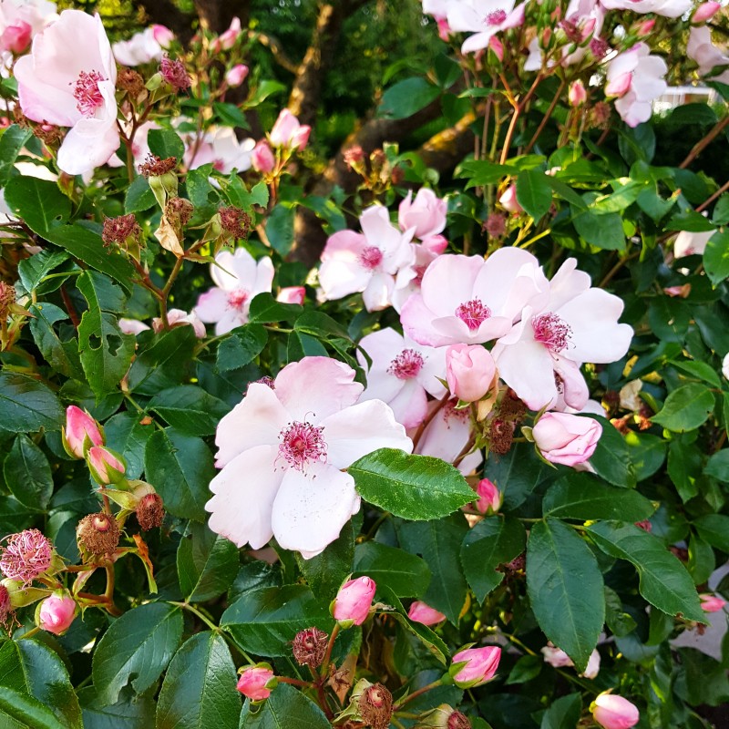 Klasblommig buskros med upprätt växtsätt. Blommar med enkla och eleganta vita till pastellrosa svagt doftande blommor, med vackra mörka ståndare. Blommar rikligt från slutet av juni till senhösten. Bladverket är friskt, mörkgrönt och blankt. Höjd 80 och bredd upp till 50 cm. Trivs i mullrik, näringsrik, något lerhaltig och väldränerad jord. Zon 1-2. KRUKODLADE.