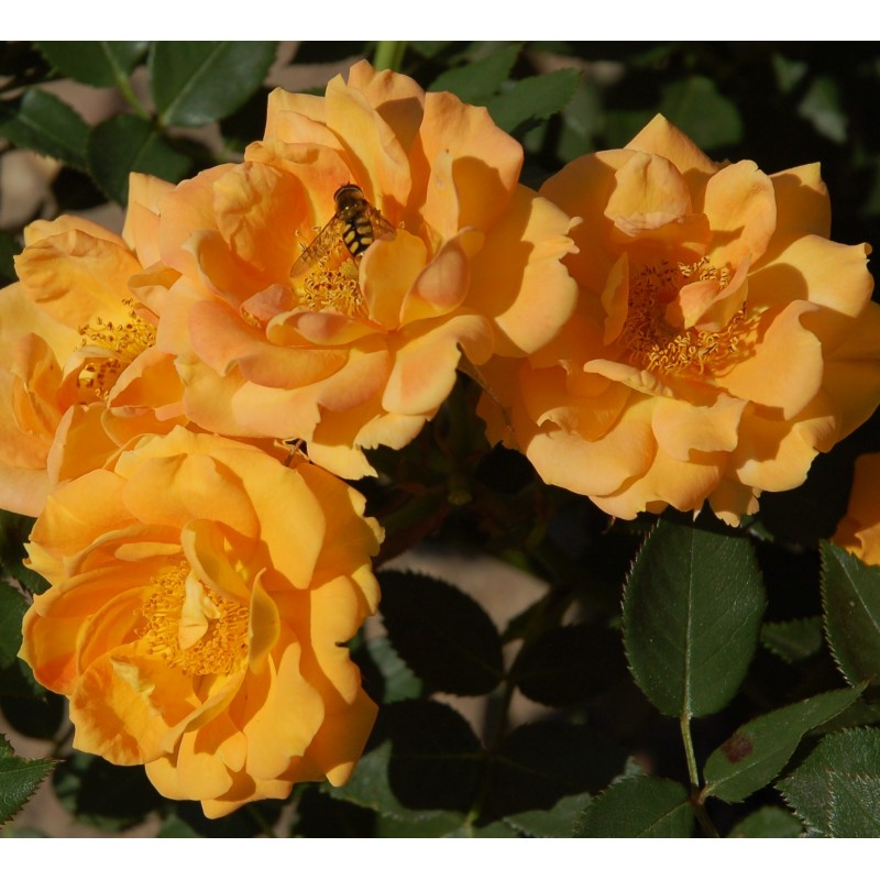 En marktäckande buskros med tätt och brett upprätt växtsätt. Blommar med medelstora, halvfyllda, mörkt bärnstensgula blommor med orangegula nyanser, som sitter i stora klasar. Doften är svag. Blommar kontinuerligt från juni till oktober. Bladverket är blankt, läderartat och grönt. Höjd 40-60 cm. Zon 1-3 (4). PRIS/ST (2024)