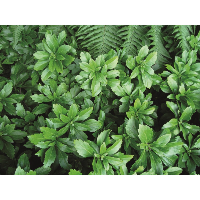 (Pachysandra terminalis 'Green Carpet') Trivs i kalkfri, humusrik och fuktig jord. Soligt läge och kalkrik jord gör att bladen blir gula. Utmärkt marktäckare i skuggiga lägen. Vintergrön. Oansenliga, grönvita blommor i maj. Bör gödslas. Höjd 15 cm. SKU. PRIS/ST.